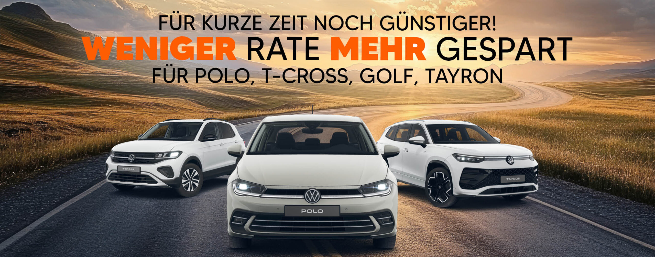 1) Laufzeit 48 Monate; Jährliche Fahrleistung 10.000 km; inkl. Auslieferungskosten für die Autostadt Wolfsburg; zzgl. Zulassungskosten. Angebot für Privatkunden. Angebote der Volkswagen Leasing GmbH, Gifhorner Str. 57, 38112 Braunschweig, für die wir als ungebundener Vermittler gemeinsam mit dem Kunden die für den Abschluss des Leasingvertrags nötigen Vertragsunterlagen zusammenstellen. Bonität vorausgesetzt. Fahrzeugabbildungen zeigen Sonderausstattungen gegen Mehrpreis. Irrtümer, Änderungen und Zwischenkauf vorbehalten. Gültig bis 31.12.2025.